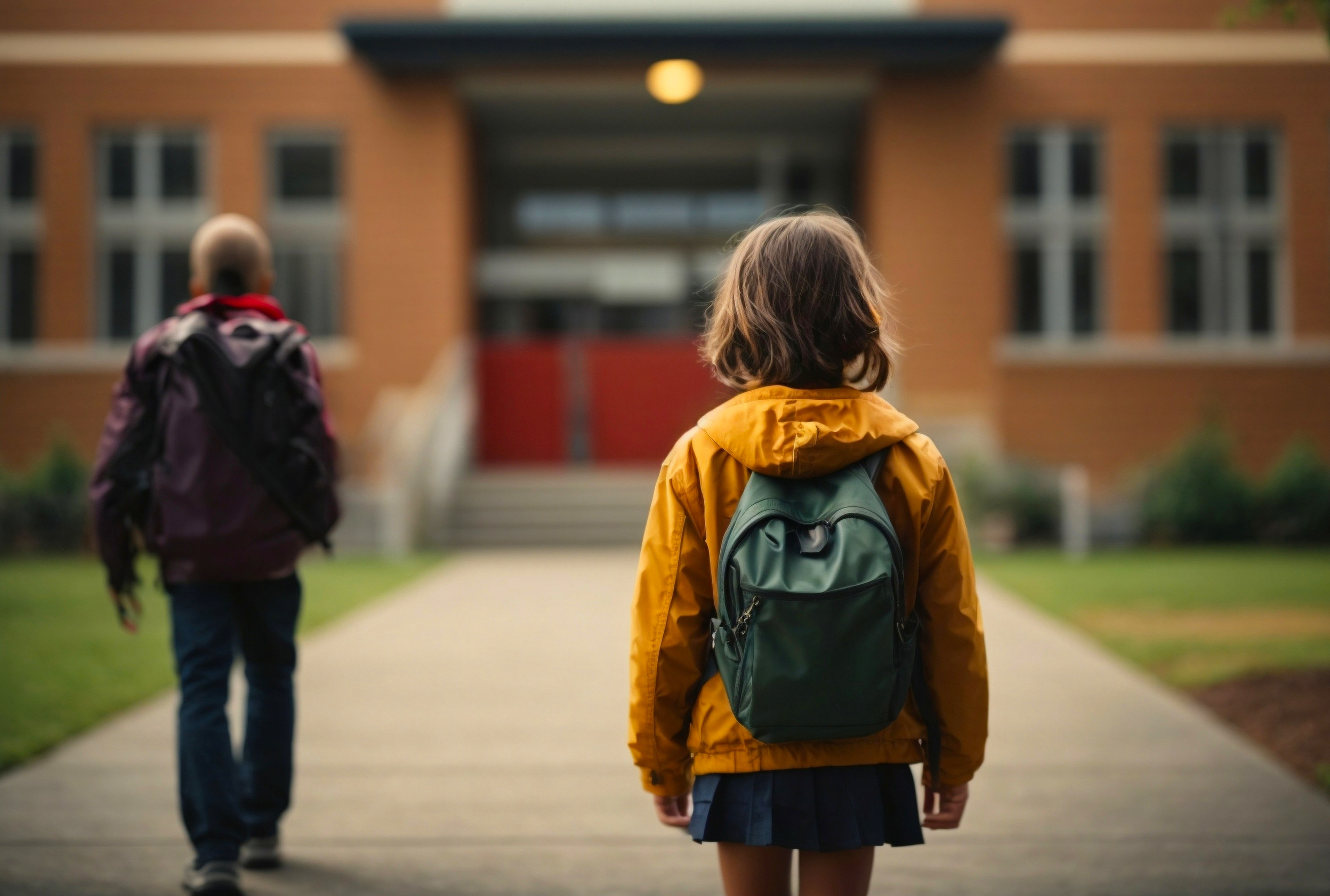student child girl standing in front of the school