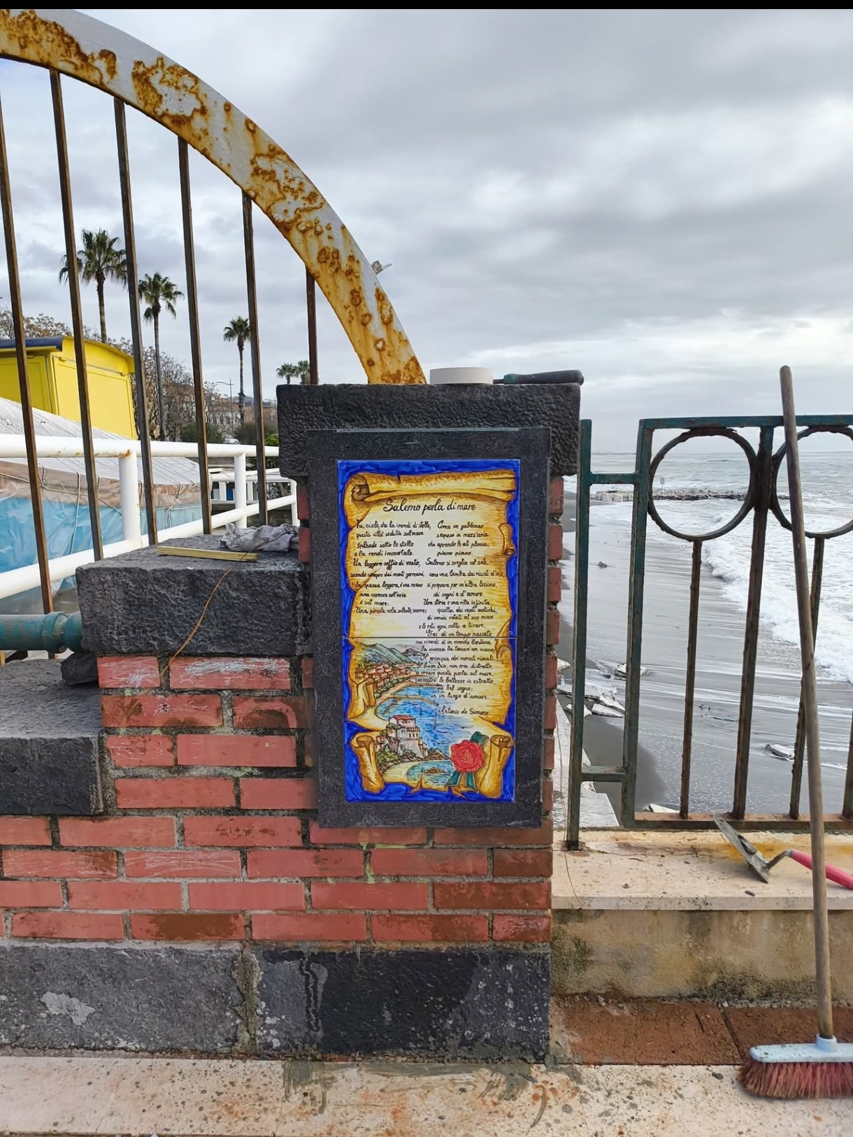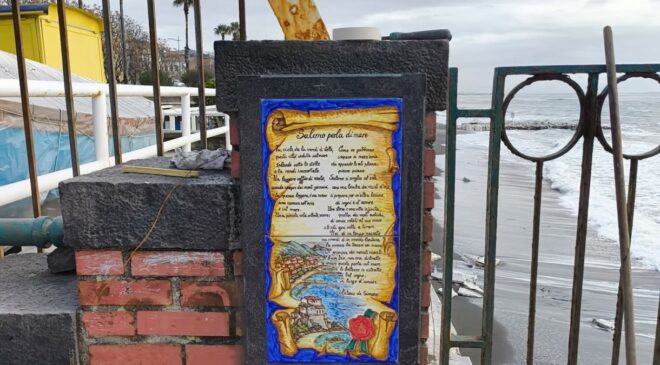 Salerno, mattonella con poesia nei pressi dei giardini del Mandorlo: perplessità dei residenti di Torrione