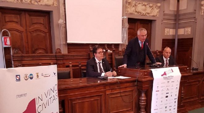 Questa mattina presso il Salone del Genovesi della Camera di Commercio di Salerno in via Roma si è parlato di vino e turismo. Organizzato dall’associazione Createm, “In vino Civitas” è il Salone del Vino che si terrà a Salerno dal due al quattro dicembre prossimi. L’iniziativa che gode del patrocinio della Regione Campania, della Provincia di Salerno, del Comune di Salerno, della Camera di Commercio di Salerno, Autorità Portuale di Salerno e con il patrocinio dell’Ais (Associazione Italiana Sommelier) sarà ospitata presso la Stazione Marittima di Salerno.